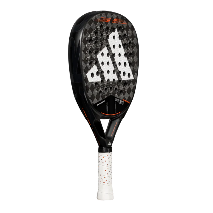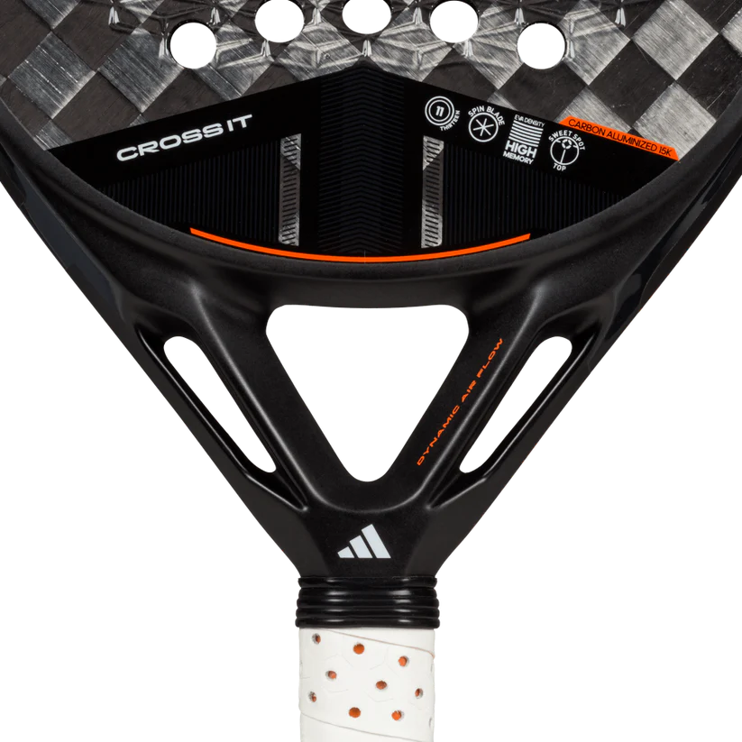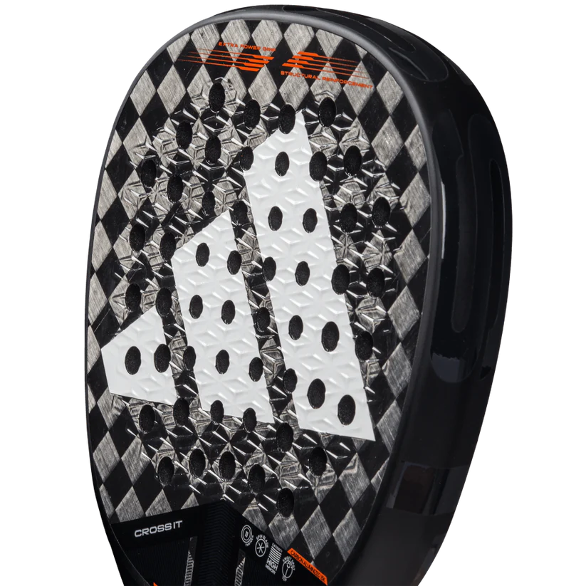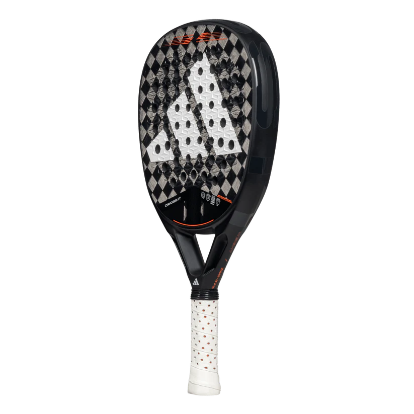 Make a bold statement on the court with a dynamic design that empowers every swing. The CROSS IT 3.4 is crafted for players who demand excellence on the court. This new-generation racquet incorporates innovative technologies to elevate your performance at every level. The Dynamic Air Flow feature optimises airflow through open holes in the racket's heart, reducing air resistance for smoother manoeuvrability. The longer handle with Power Extra Grip shifts the balance toward the head, allowing you to deliver powerful and precise shots effortlessly. Made from high-quality Carbon Aluminized 15K and High Memory EVA rubber, it ensures stiffness, durability, and consistent high performance. The 11 Thirteen system, featuring smaller diameter holes in the centre, increases resilience, while the Spin Blade Mold integrates 3D relief for enhanced spin capabilities. DYNAMIC AIR FLOW The aerodynamic structure of the racquet’s core facilitates airflow, enhancing shot speed and overall performance. This adidas technology features strategically placed holes designed to minimise air resistance in the area between the handle and the head, improving ease of handling and execution speed. 11 Thirteen The racquet’s hole distribution improves rigidity, power, and impact resistance. This is achieved through a combination of 13 standard-sized holes with 11 smaller holes in the central area. The smaller holes provide greater solidity in the zone most exposed to high-intensity impacts. Power Extra Grip This innovative longer grip significantly increases the racquet's inertia during shots, especially in offensive strokes. The longer-than-usual distance between the bottom of the handle and the top of the head allows for greater swing speed and more powerful impacts. Specifications: Brand: Adidas Shape: Diamond Balance: Head Heavy Level: Advanced Gender: Unisex Core: Eva High Memory Face: Carbon Aluminized 15k Weight: 360-375gr Surface: Medium Playing Style: Power