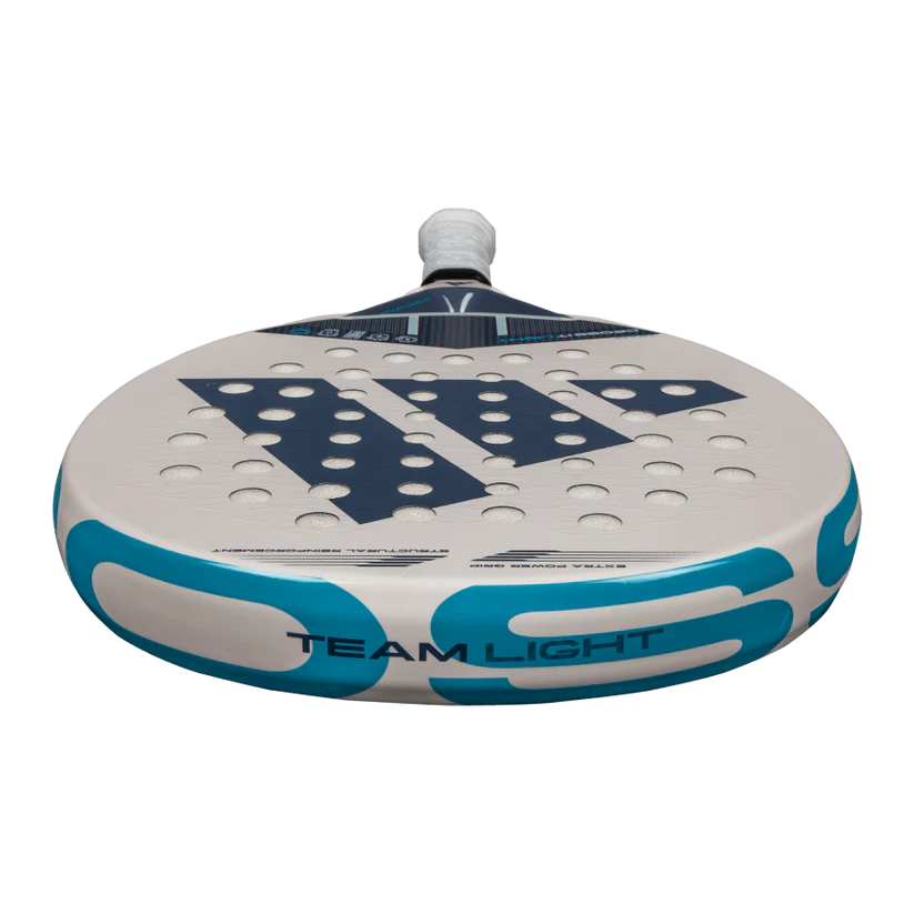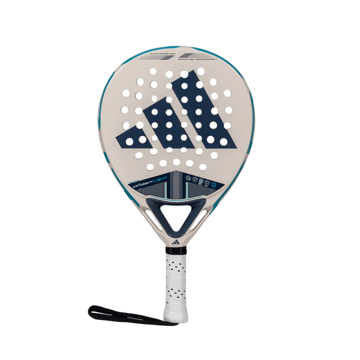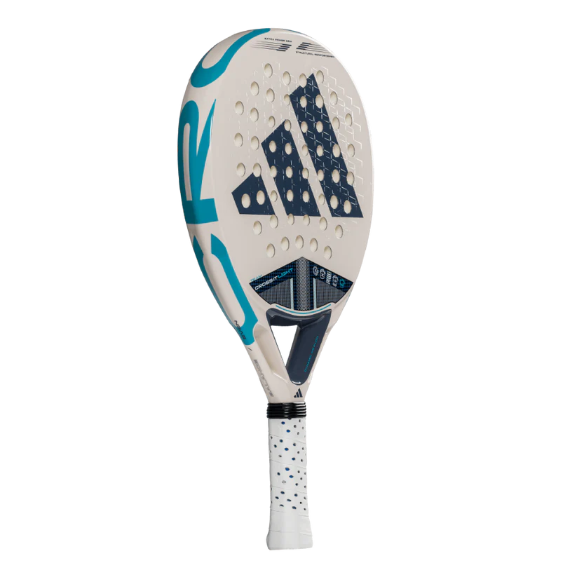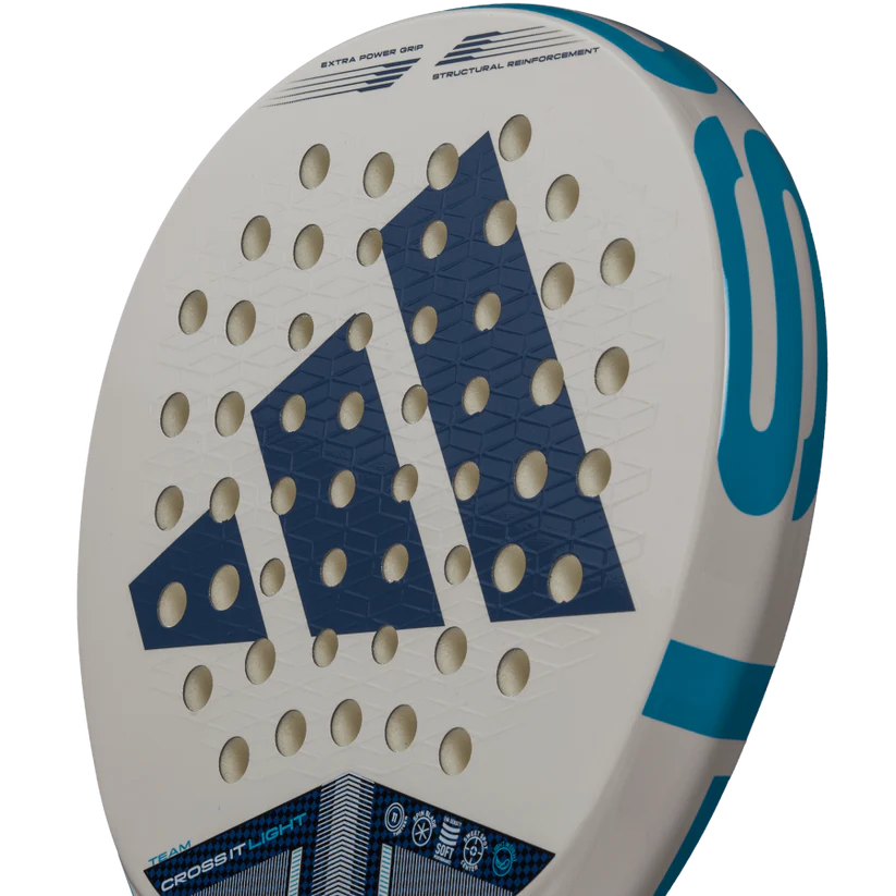 A featherlight design combined with advanced features for unbeatable performance on the court. The CROSS IT TEAM LIGHT stands out within the CROSS IT range as a lightweight innovation that doesn't compromise on essential performance features. With the Power Extra Grip and 11 Thirteen hole arrangement, it effortlessly delivers powerful shots when needed. Incorporating Dynamic Air Flow technology, this racquet features open holes that reduce air resistance, promoting quick manoeuvres and allowing players to react swiftly in fast-paced situations. The Spin Blade Decal adds another layer of precision, maximising control and spin for confident shot execution. Its lightweight design offers exceptional comfort during technical movements, helping players maintain agility on the court. Made from fibreglass and low-density EVA rubber, it offers a soft touch and increased comfort, enhancing the overall playing experience. Tecnology: DYNAMIC AIR FLOW The aerodynamic structure of the racquet’s core facilitates airflow, enhancing shot speed and overall performance. This adidas technology features strategically placed holes designed to minimise air resistance in the area between the handle and the head, improving ease of handling and execution speed. 11 Thirteen The racquet’s hole distribution improves rigidity, power, and impact resistance. This is achieved through a combination of 13 standard-sized holes with 11 smaller holes in the central area. The smaller holes provide greater solidity in the zone most exposed to high-intensity impacts. Extra Power Grip This innovative longer grip significantly increases the racquet's inertia during shots, especially in offensive strokes. The longer-than-usual distance between the bottom of the handle and the top of the head allows for greater swing speed and more powerful impacts. Specifications: Brand: Adidas Shape: Round Balance: Even Level: Advanced Gender: Men Core: Soft Energy Face: CARBON FRAME Weight: 345-360gr Surface: FIBER GLASS Playing Style: Control