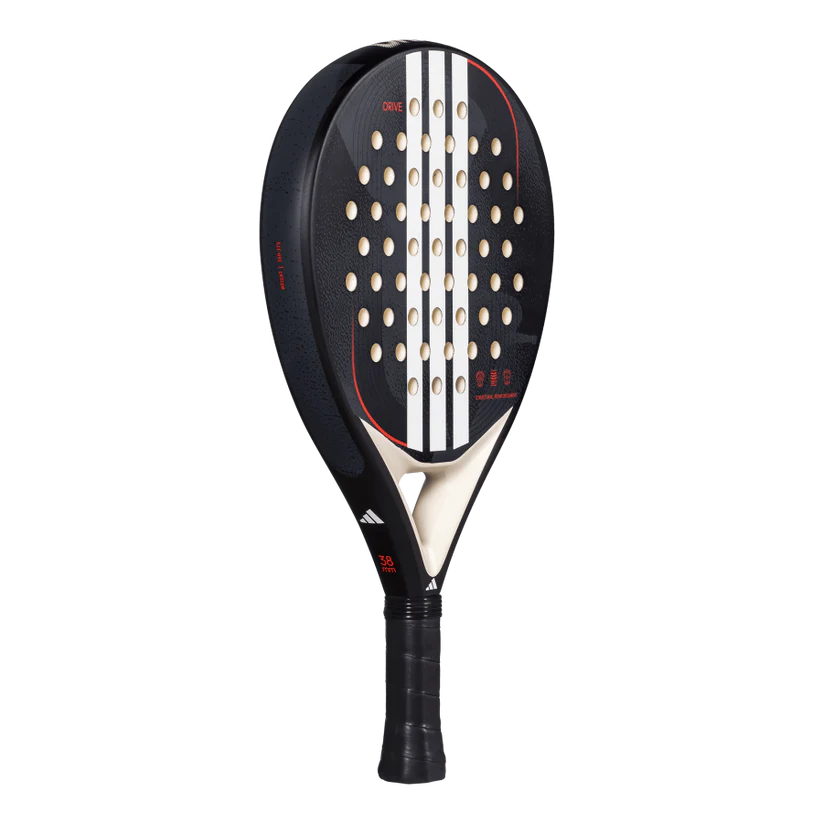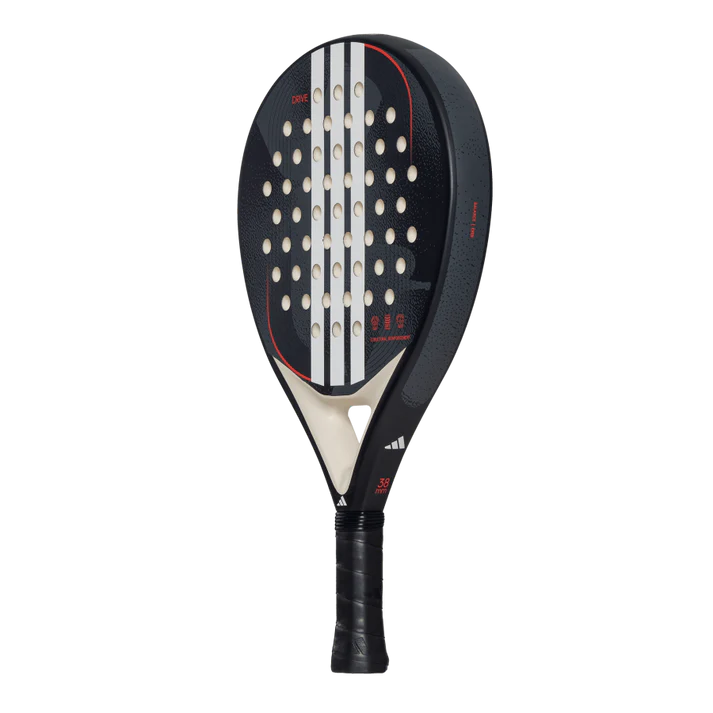 adidas Drive BLACK 3.4 Everything a beginner needs for a smooth and confident start in padel, perfectly combined in this racquet. The ADIDAS DRIVE BLACK 3.4 is perfect for those starting out, offering all the features beginners need to improve and gain confidence on the court. Its Structural Reinforcement enhances durability by resisting torsion, while the Smart Holes Lineal pattern strengthens the striking surface for lasting performance. With EVA Soft Performance foam, this racquet ensures excellent ball output and comfort, making every shot smooth and effortless. The fibreglass surface provides a soft touch for better control. Combining comfort, control, and durability, it's an ideal choice for those just starting their padel journey. Tecnology: STRUCTURAL REINFORCEMENT This system of perimeter reinforcements located in the frame and core guarantees high levels of rigidity. Power flows through its carbon fibres, offering ideal structural solidity to withstand high-impact shots. SMART HOLES LINEAL The equidistant hole distribution in groups of three makes the racquet more resistant. The alignment of the holes makes it more compact in the areas where most impacts occur, thus significantly extending its lifespan. FIBERGLASS One of the most notable features of this material is its high elasticity. On slow shots or from the back of the court, it provides better ball exit compared to carbon fiber, thanks to its ability to generate a spring-like effect. Additionally, this material allows for a softer feel, making it ideal for players who prioritize comfort in their game. Specifications: Brand: Adidas Shape: Round Balance: Even Level: Beginner Gender: Unisex Core: RUBBER EVA Soft Performance Face: Fiber Glass Weight: 360-375gr Surface: Smooth Playing Style: Control