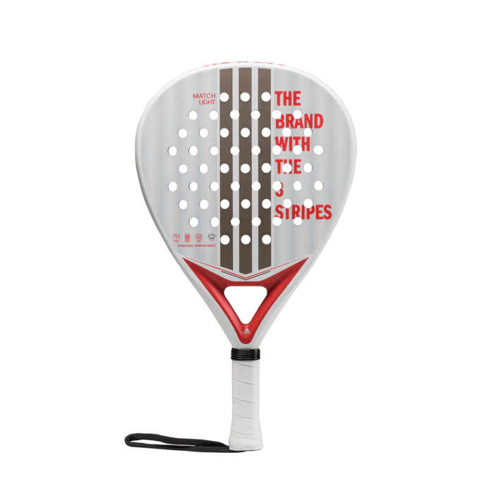 Adidas MATCH LIGHT 3.4 Padel Racket The ADIDAS MATCH LIGHT 3.4 is an excellent choice for players just starting their padel journey, offering an ideal blend of comfort and performance. Its lightweight design ensures fluid handling and agility, making every stroke feel effortless on the court. The versatile all-round shape strikes a great balance between control and power. Powerful shots thrive thanks to structural reinforcements that provide just the right amount of rigidity, while the innovative Smart Holes Lineal technology with equidistant holes boosts the striking surface for better performance and durability. The combination of fibreglass and low-density EVA Soft Performance foam delivers exceptional ball output along with a comfortable feel during matches. Tecnology: STRUCTURAL REINFORCEMENT This system of perimeter reinforcements located in the frame and core guarantees high levels of rigidity. Power flows through its carbon fibres, offering ideal structural solidity to withstand high-impact shots. SMART HOLES LINEAL The equidistant hole distribution in groups of three makes the racquet more resistant. The alignment of the holes makes it more compact in the areas where most impacts occur, thus significantly extending its lifespan. FIBERGLASS One of the most notable features of this material is its high elasticity. On slow shots or from the back of the court, it provides better ball exit compared to carbon fiber, thanks to its ability to generate a spring-like effect. Additionally, this material allows for a softer feel, making it ideal for players who prioritize comfort in their game. Specifications: Brand: Adidas Shape: Round Balance: Slightly Head Heavy Level: Beginner Gender: Unisex Core: RUBBER EVA Soft Performance Face: Fiber Glass Weight: 360-375gr Surface: GLASS FIBER Playing Style: Control