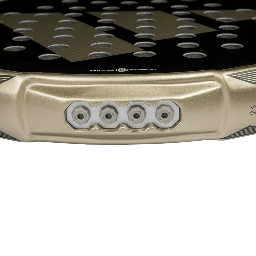 The improved version of this technology for the 2025 rackets allows players to adjust the weight and balance as they wish. Using a system of screws, plates, and removable washers on the sides and top of the racquet frame, you can modify the weight by up to 11.2g and its distribution. Maximise control or increase power to your liking.