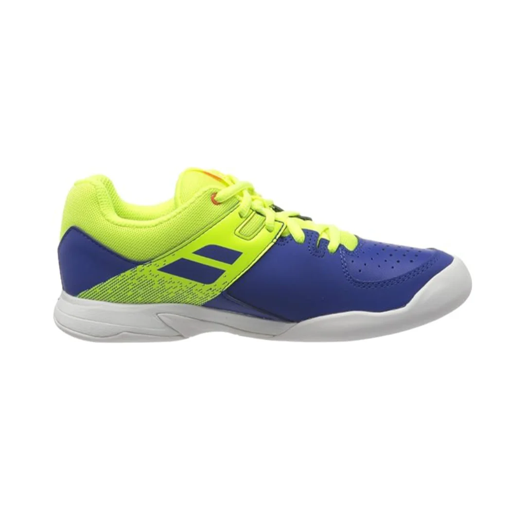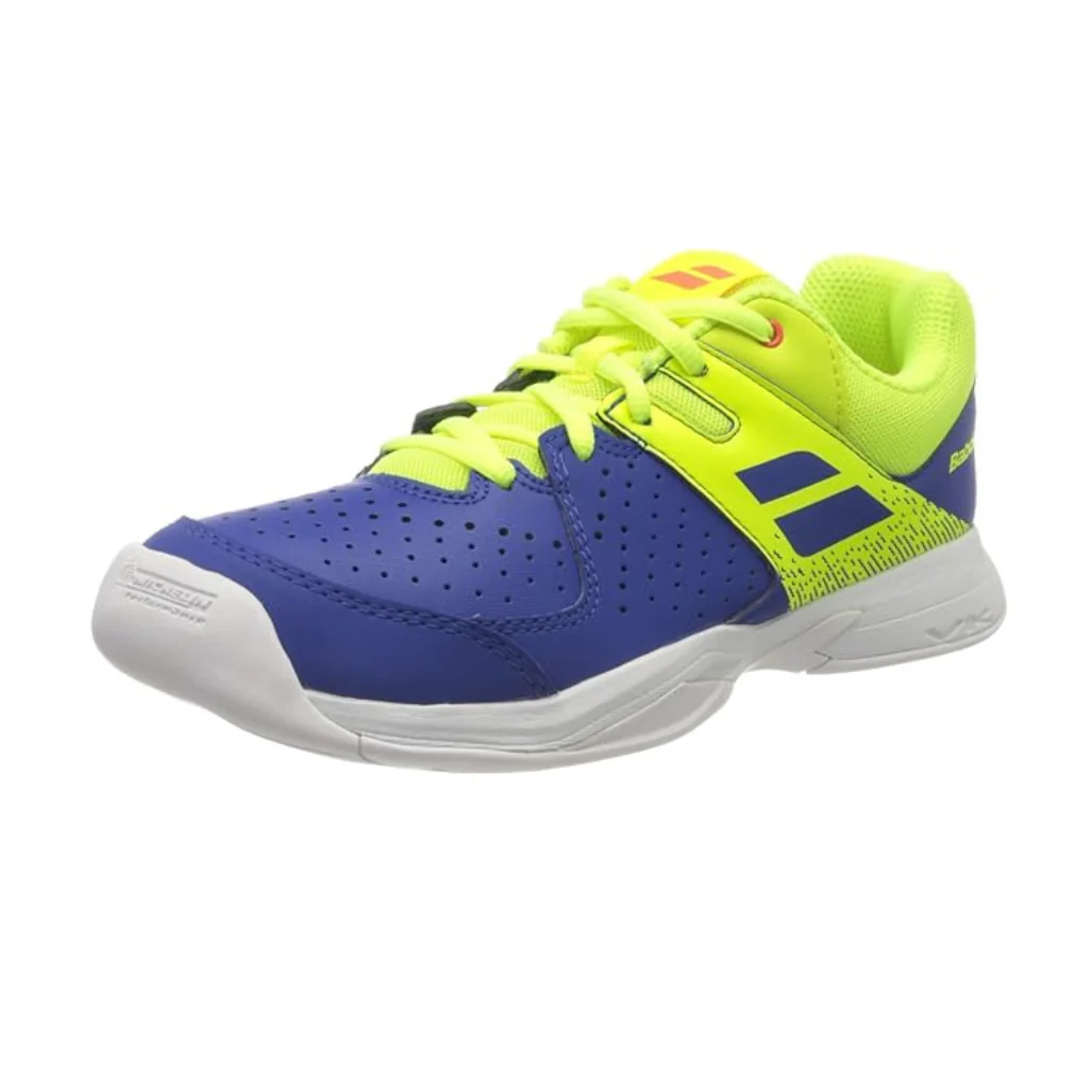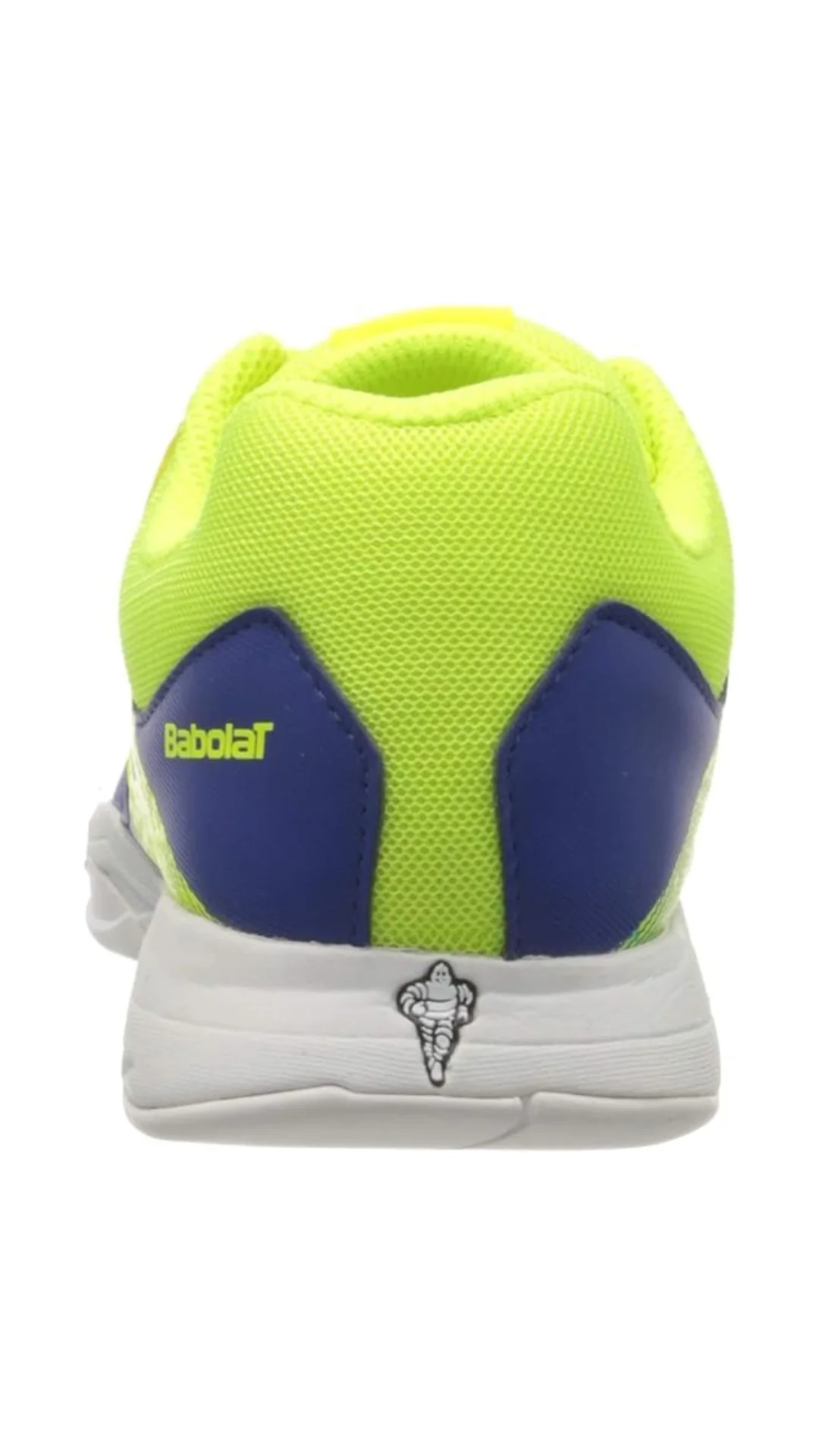 BABOLAT PULSION INDOOR JUNIOR - Blue/Fluo Aero TENNIS SHOES Description : Babolat Pulsion all court junior tennis shoe offers maximum comfort in a durable tennis shoe for young tennis players of all levels. The comfortable fit and cushioned EVA midsole provide comfort, while a durable synthetic upper and the exclusive Michelin outsole add to the durability of this shoe.