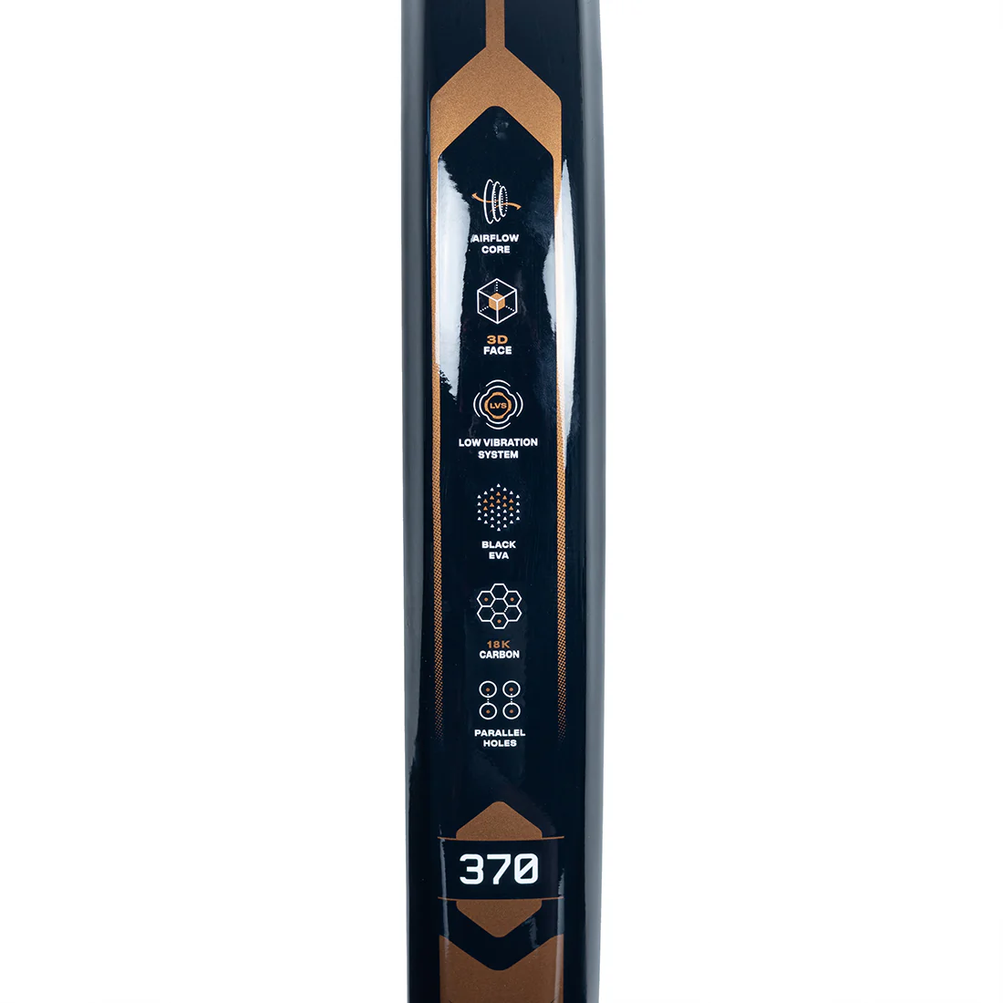The structure incorporates neural channels for greater rigidity and 18k carbon fiber on the 3D surface, designed to improve the ball spin. The core is made of reinforced EVA rubber, a high-density material that increases power without sacrificing control.