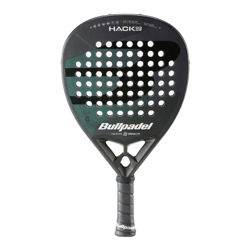 Bullpadel Hack CMF 03 2023 – Padel Racket Description: The Hack Comfort is a diamond shaped racket, of maximum power and high performance without control losses. It has been created for professional or advanced players. It features the new Air React Channel system, which consists of an aerodynamic frame while creating a steady, agile, and light structure at the same time. Its outer core is made of Fibrix hybrid fiber, its inner core is made of the new MultiEva that consists of 2 different Eva densities and its CarbonTube frame of 100% carbon fiber. Weight approx. 360-370 grs. Profile: 38 mm. Balance: High Shape: Diamond Exterior: Fibrix Interior: Multieva Protector: Aluminum Player: Expert adult Power/Control: 100/90 Technologies: Vibradrive Vibradrive is a handle assemblage system that interleaves a rubber part of high elasticity, dividing it in half. This part absorbs the major part of the vibrations produced during the match, especially in off-center shots. Carbontube This structure offers our rackets the maximum mechanic response, guaranteeing a perfect combination of power and control. Tricarbon The New Tricarbon Fibre Consists Of Thinner And Lighter Carbon Strips Interwoven In Three Directions. Because Of This, A Better Shot Reaction And A Better Return Are Achieved. Metalshield This Protector Manufactured In Aluminium Alloy Of Reduced Weight Promotes A High Resistance To Impact And Protects The Surface And The Structure Of The Rackets Frame. It Is Glued To The Frame With A Special High-Consistent Adhesive, Avoiding Holes In The Frame. Protector Customweight It Is Located In The Metalshield Protector Compartments, Where Up To 3 Aluminium Adhesive Plates, Each Weighing 3 Grams, Can Be Placed, Allowing The Rackets Change Of Weight And Balance. It Provides More Control, Power And Balance Considering Each Players Needs. Multieva The new MultiEva has 2 densities: the exterior layer of the rubber is more compact, reacting to fast balls and offering a higher output power. The inner layer, of less density, reacts to slower balls, resulting in more shot control. Nerve The Nerve System Is Based On The Creation Of Channels On The Side Of The Frame, Increasing Rigidity, And At The Same Time Reducing Weight And Providing Greater Control To The Shot. Hack The Rackets Hack Heart Is Rigid To Enhance The Control Of Off-Centre Shots. In Addition, Its Studied Design Results In A Perfect Balance Of Weights. Adaptia Adaptia Is The New Development For Our Pro Line Rackets.Based On The Combination Of The New Tri Carbon Intelligent Carbon And The Last Concept In Double Layer Elastomer, The Multieva. All Combined With The Frame Geometry And The Hack Heart Technology. Hesacore Hesacore Consists Of An Innovative Grip. Its Honeycomb Design Provides A Larger Surface Of Contact Between The Hand And The Handle. It Allows The Fingers To Rest On Concave Surfaces, Reducing The Effort, The Transmission Of Vibrations And Lesions.