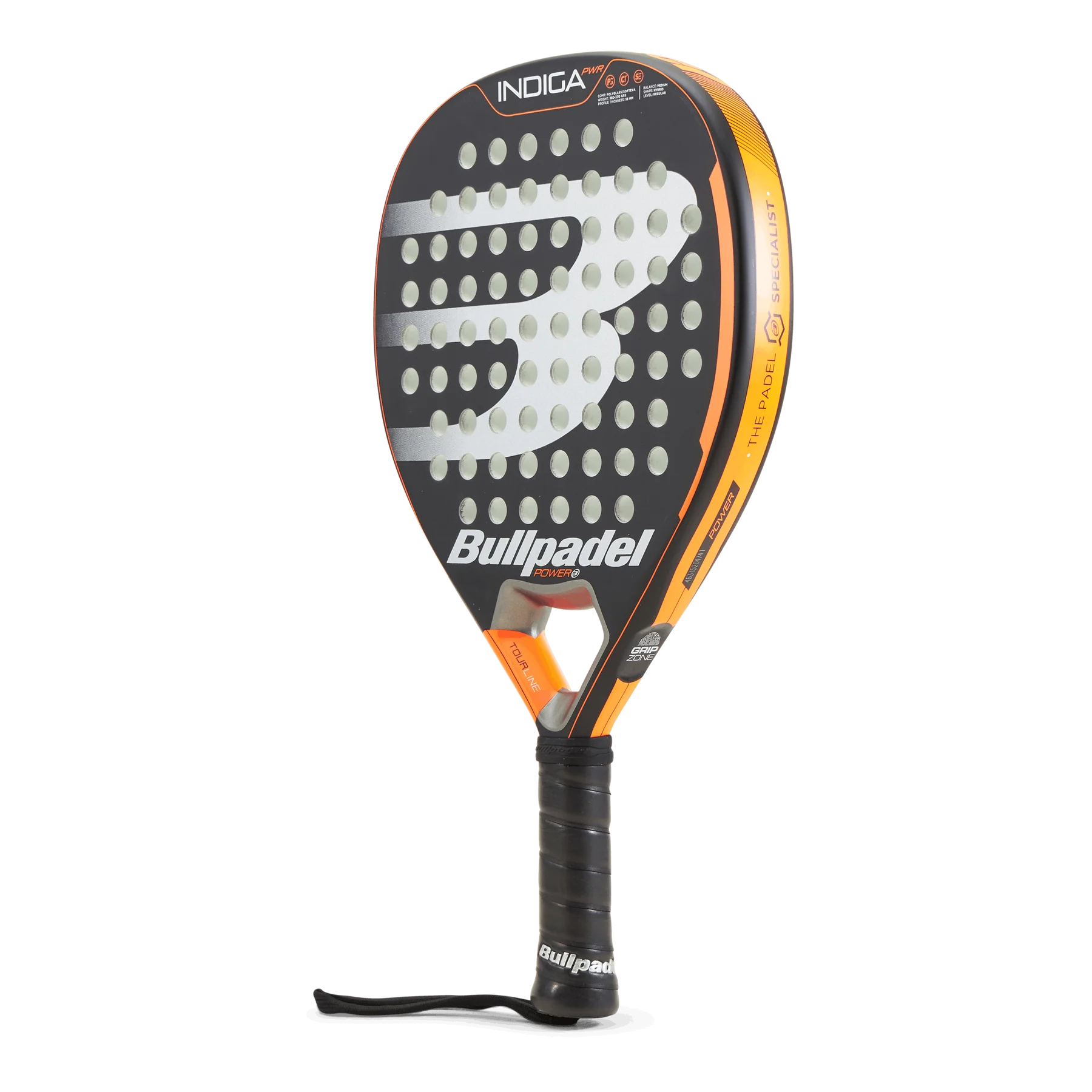 Bullpadel INDIGA PWR 22 – Padel Racket Description: Indiga PWR 2022: The perfect racket for beginners and casual players If you're new to the world of tennis or play the sport occasionally, the Indiga PWR 2022 is the perfect racket for you. This high-quality racket is designed to help you improve your game and take your skills to the next level. One of the standout features of the 2022 Indiga PWR is its construction. The outer layer of the racket is made of Polyglass, a durable and lightweight material that can withstand the wear and tear of regular use. The inner core of the racket is made of SoftEva rubber, which provides a comfortable grip and helps absorb shock during play. In addition, the CarbonTube frame is made of 100% carbon fiber, which makes the racket incredibly strong and sturdy. But the 2022 Indiga PWR isn't just about durability and strength. It's also designed to help you play your best game. The weight and balance of the racket are carefully calibrated to provide the perfect combination of power and control. This means that you will be able to hit the ball harder and more accurately, giving you a competitive edge on the court. Overall, the Indiga PWR 2022 is a great choice for anyone who wants to improve their tennis game. Whether you're a beginner or a casual player, this racquet will help you perform at your best and enjoy the sport to the fullest Additional Information: Sport: Padel Power & Control:70 / 60 Hit Surface: Polyglas Weight:370g Protector: No Frame Profile:38 mm Level: Amateur Shape: Diamond Balance: High Core: Softeva Department: Men Women Length (mm):455 Weight (g):360-370 Frame profile (mm):38 Material: Carbon Cover: NO Technologies POLYGLASS -SOFTEVA - CARBONTUBE