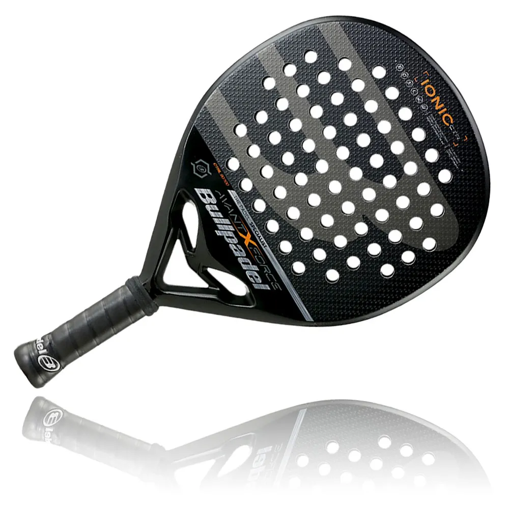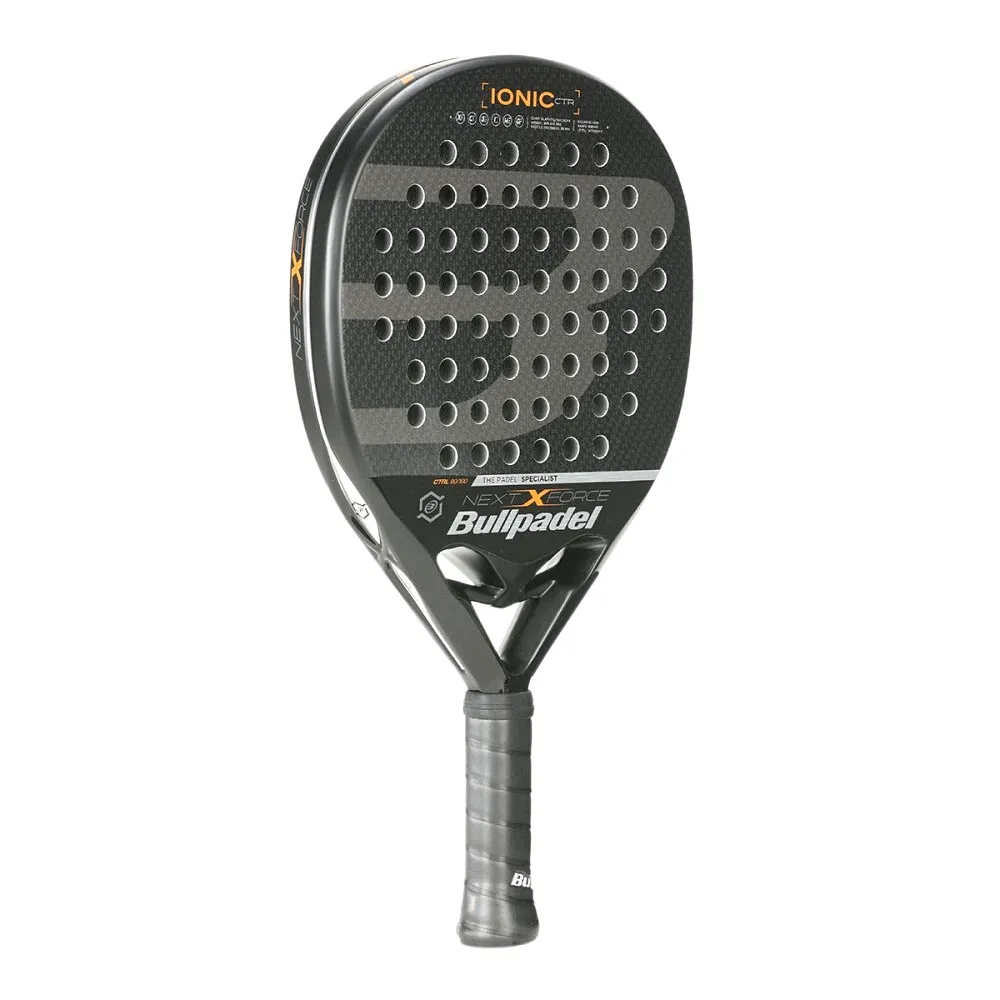 Bullpadel Ionic CONTROL 22 – Padel Racket Description: The new IONIC CONTROL racket from the Bullpadel brand has a low balance and the innovative XForce system. Its outer core is composed of a mixture of carbon fiber and fiberglass, and its inner core is composed of multieva. It features a 100% carbon fiber CarbonTube frame. It has a low balance and a round shape, which makes it a CONTROL racket. Therefore, it is easy to handle and with a wide sweet spot. It has a Multieva inside, which gives it extra power when making a smash or power shot, in addition to giving it greater control to the placement of the ball. Its weight is in a range of 365-375 gr, which makes it a DSTANARD weight racket for adults. Their faces are made of Glaphite, which gives a comfortable touch to the racket and moderate resistance to shocks. This racket has a ROUGH finish on its faces, which is excellent for printing cut or top spin effects on the ball. The new Bullpadel IONIC CONTROL is presented this 2022 with a black design with silver accents. The cleanliness and sobriety in the concept of this racket stand out. Who is this racket for? Players looking for a reliable, easy-to-handle racket Experienced players whose game is based more on the technical than the offensive. Players who require precise touch at the net Players who require extra power, due to their hard rubber Technologies: Multieva: It has two layers of rubber, a hard one on the surface and a soft one on the inside. Which gives it power and precision in the shot. Glaphite: It is a fiber that Bullpadel invented, intertwining carbon fiber with fiberglass, which makes it durable and flexible at the same time. We will feel better comfort with each shot Carbon Tube: Full frame of the racket made of interlocking carbon fiber. It is a structurally strong and reliable racket. 3D Grain: The faces of the racket have a rough finish in the shape of polygons, to give better friction and spin to the ball for better effects. Why will you like it? It is an easy-to-handle racket It is a reliable racket It is a racket of recognized brand It is a racket with a comfortable touch Specifications: Length (mm):455 Weight (g):365-375 Frame profile (mm):38 Material: Carbon Cover: NO