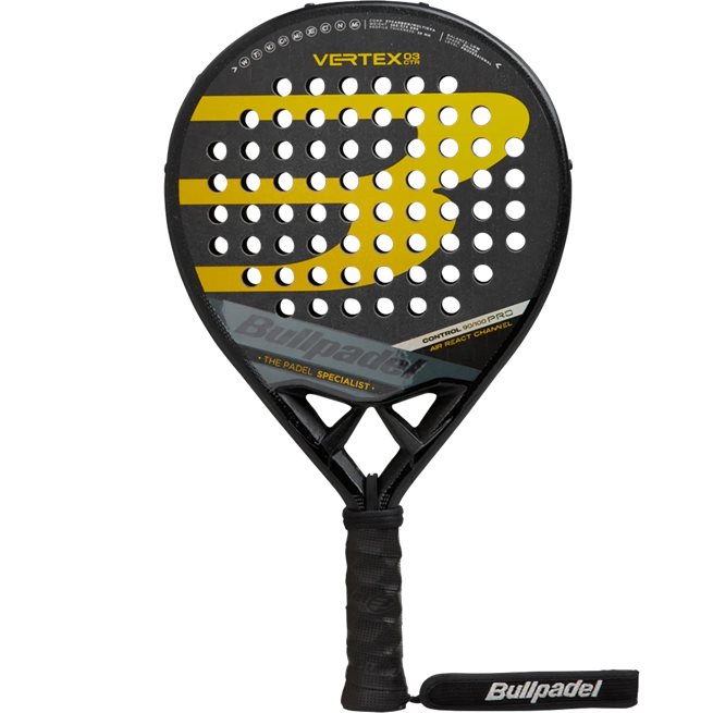 Bullpadel Vertex CTR 03 2023 – Padel Racket Description: The Vertex 03 Control is a round padel racket with low balance from Bullpadel. This high-performance racket allows you to take control of the game and is suitable for both training and competing. The racket is equipped with a Metalshield frame that allows you to adjust the weight and balance to suit your particular style of play. The frame is made of 100% carbon fiber. Suitable for experienced players Adjustable weight and balance Aerodynamic design Shock-absorbing technology The Vertex 03 Control is designed with an Air React Channel system, which creates an aerodynamic frame with less weight and smoother playing feel. The racket has an outer core of Xtend Carbon 12K carbon fiber and an inner core of Multi EVA rubber for a perfect balance between high and low density. The hitting surface has an innovative coating that mimics sandpaper for more spin and impact on impact. The Vibradrive system and the ergonomic Hesacore handle dampen vibrations for a higher comfort and reduced risk of injury. Specifications: Weight: 375 g Shape: Round Bezel profile: 38 mm Balance: Low Properties: Control Level: Advanced