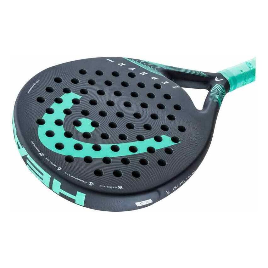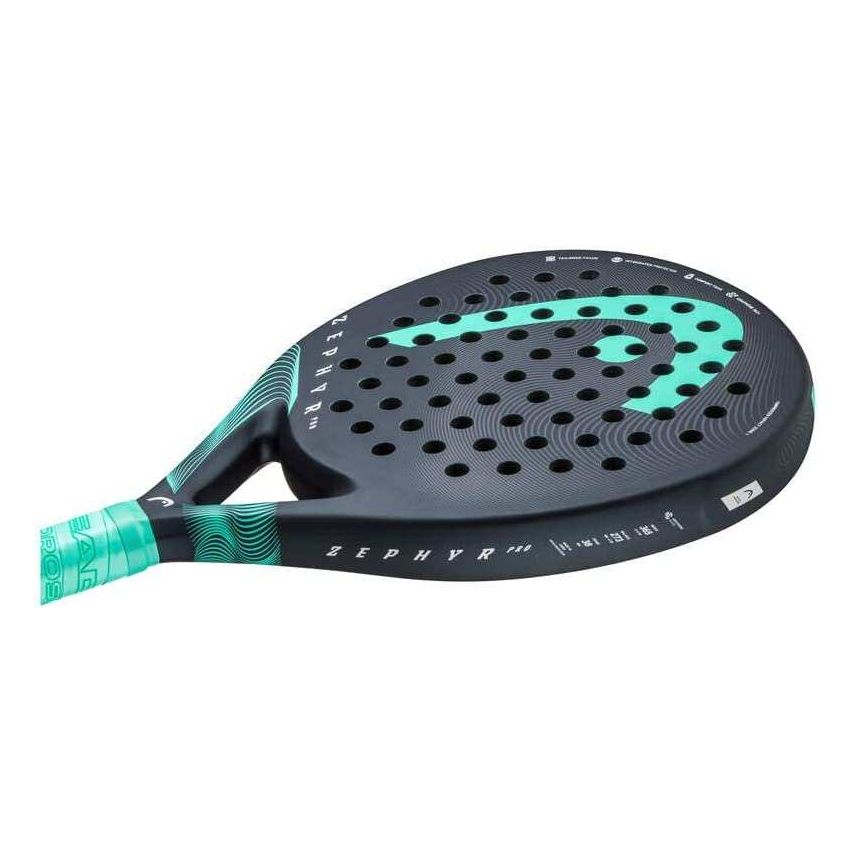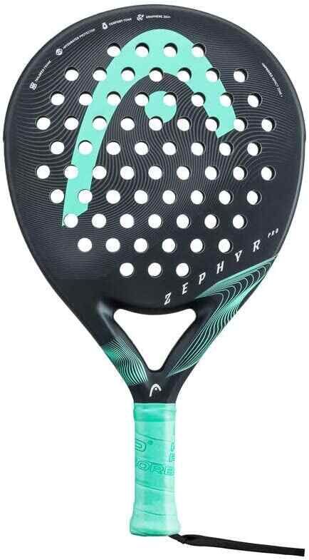 HEAD ZEPHYR PRO Padel Racket Description: 2023 HEAD ZEPHYR PRO, MANEUVERABILITY Enjoy your most intense games to the fullest with the new Head Zephyr Pro 2023 paddle designed with premium durable and comfortable materials. Made in a round shape with its new Graphene 360 technology that will guarantee greater stability on impact. It will offer a great feeling of comfort and lightness. Our pro padel model, which features the most recent Graphene Touch technology, has a circular shape and a bigger sweet spot to help you play better. When you play, you will feel at ease and totally connected to your racquet thanks to the tour-level carbon fiber used in the handles and shaft. For seasoned padel players wishing to better their game, this is a great option. offers expert players comfort and control. Features New circular control design with a larger sweet spot and Graphene Touch technology features two colors Black Teal and Blue Black Product Details: SHAPE: Round WEIGHT: 365 g / 12.9 oz HEAD SIZE: 490 cm² / 76 in² BALANCE: 270 mm / 1.7 in HH BEAM: 38 mm / 1.5 inr.