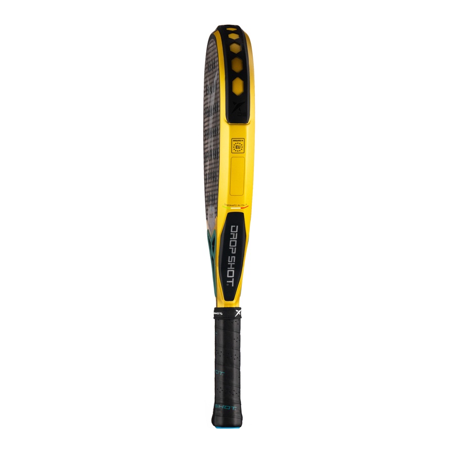 Unleash your full potential on the padel court with the Drop Shot Axion Attack 2024, a high-performance racket from the prestigious Be One line. Featuring advanced technology and premium materials, this model is perfect for players who demand both power and precision. Its elegant design, with yellow accents on the frame and a blue-green heart, ensures you stand out in style. Key Features & Technologies: • Teardrop Shape & High Balance – Designed for an aggressive, attacking playstyle. • Twin Tubular Carbon Frame – Enhances structural rigidity and durability. • 18K Bidirectional Carbon Faces + 3D Face Texture – Maximizes ball effect for enhanced spin. • EVA Pro Rubber Core – Delivers optimal control and explosive power. • Power Beam Heart & TeXtreme Technology – Strengthens the racket's core for improved stability and precision. • Vibra Tech Angles & Anti Twist System – Reduces vibrations by 85%, protecting your arm from strain. • Ergo Pro Protector – Reinforces the frame without drilling, increasing its lifespan. Specifications: • Balance: 60% • Power Control: 40% • Shape: Teardrop • Weight: 350-370g • Frame: Twin Tubular Carbon • Faces: 18K Carbon + 3D Roughness • Core: EVA Pro Rubber Who is it for? • Advanced and expert players seeking a powerful yet precise racket. • Those who want a high-tech, durable, and stylish racket for aggressive play.