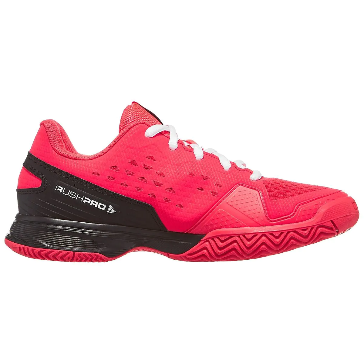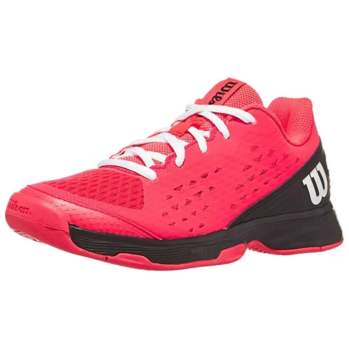 Description: Next-level playability for juniors looking for optimal cushioning and support with all-court durability and performance. WILSON Rush Pro L AC Junior shoe provides comfort and stability for the Junior player, while also featuring a durable outsole for all court surfaces. The upper is made from a combination of soft mesh for easy ventilation and comfort, which is surrounded by a synthetic layer for added support and drag protection around the toes. FIT: Playable Comfort for Juniors Lightweight, breathable materials with lateral support, a locked-in heel and cushioned collar for a comfortable fit that's ready to play. FEEL: Dynamic Cushioning Responsive EVA foam cushioning provides a dynamic combination of cushioning and energy return. FUNCTION: Tennis - Hard Court / Clay Court High-density rubber outsole with drag pad provides traction and abrasion resistance on all surfaces. Sole material: Rubber Shaft height: Ankle Outer material: Synthetic Inner material: Synthetic Rush Pro Jr L Tennis Shoe TRADITIONAL FIT - Provides the ultimate combination of support, stability, durability and cushioning with every step. Special for juniors: The perfect option for young people looking for reliable and durable sneakers. COMPOSITION - Technologies enhance comfort and breathability by combining high-quality outsole materials with a cushioned foam midsole. Ideal playing surface: All track surfaces