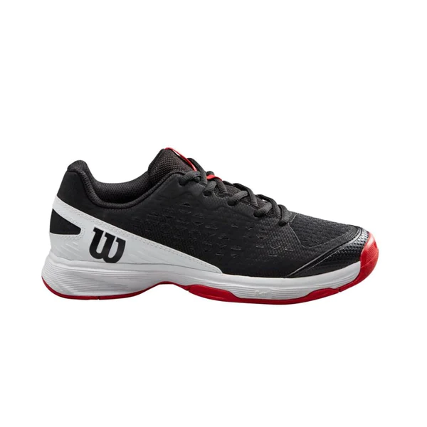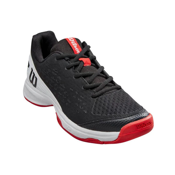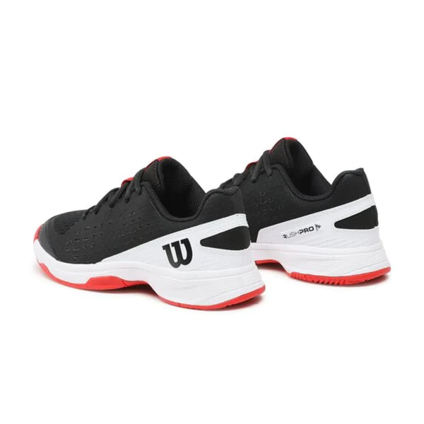 Description: Next-level playability for juniors looking for optimal cushioning and support with all-court durability and performance. WILSON Rush Pro L AC Junior shoe provides comfort and stability for the Junior player, while also featuring a durable outsole for all court surfaces. The upper is made from a combination of soft mesh for easy ventilation and comfort, which is surrounded by a synthetic layer for added support and drag protection around the toes. FIT: Playable Comfort for Juniors Lightweight, breathable materials with lateral support, a locked-in heel and cushioned collar for a comfortable fit that's ready to play. FEEL: Dynamic Cushioning Responsive EVA foam cushioning provides a dynamic combination of cushioning and energy return. FUNCTION: Tennis - Hard Court / Clay Court High-density rubber outsole with drag pad provides traction and abrasion resistance on all surfaces. Description: Comfortable, durable shoe that will raise your junior’s movement to the next level. No distractions. Stay comfortable on the court in the Wilson Rush Pro Ace Jounir Perfect for warm weather, these junior Tennis Shoes keep you feeling good with a breathable design. The EVA midsole adds cushioned support, and the durable outsole delivers high traction on any surface. Traditional Fit: Provides ultimate blend of support, stability, durability, and cushion with every step Junior Focused: Perfect shoe for rising juniors seeking reliable, durable Shoes Composition: Technologies enhance comfort and breathability by combining high-quality outsole materials with a cushioned foam midsole Ideal Playing Surface: All Court Surfaces Size: 33, 33 2/3, 34 1/3, 35, 35 2/3, 36 1/3, 37, 37 2/3, 38 1/3, 39 Sole material: Rubber Shaft height: Ankle Outer material: Synthetic Inner material: Synthetic Rush Pro Jr L Tennis Shoe TRADITIONAL FIT - Provides the ultimate combination of support, stability, durability and cushioning with every step. Special for juniors: The perfect option for young people looking for reliable and durable sneakers. COMPOSITION - Technologies enhance comfort and breathability by combining high-quality outsole materials with a cushioned foam midsole. Ideal playing surface: All track surfaces