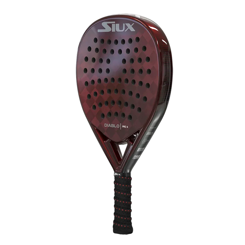 The new Siux Diablo Pro 4 is a professional paddle racket designed for demanding players who need a versatile tool, capable of adapting to all phases of the game with high performance. For this reason, it is the racket chosen by Tino Libaak, a professional padel player, for his 2025 matches. Its hybrid shape and medium balance offer a perfect combination of control and power, ideal for dominating both from the baseline and at the net.