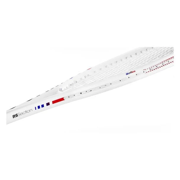 Isoflex technology, progressive rigidity all around the frame and associated with each string in order to standardize the size to increase tolerance and stability on impact.