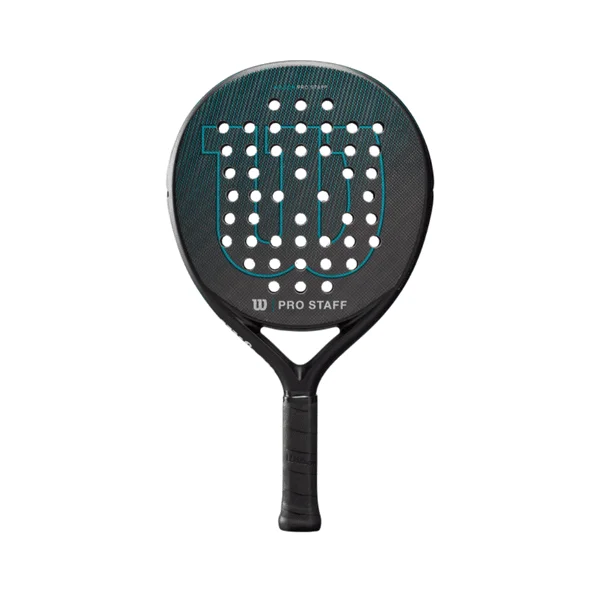 Sporting a round shape with a longer handle for a comfortable two-handed grip, the Pro Staff Team V2 makes the game easier for players new to padel. Featuring an enviable sweet spot and a hole pattern designed for enhanced control, this padel racket contains ample potential for consistency and playability. New to the line is a weighting system that places additional weight on the perimeter of the head for increased stability through the swing. Includes wrist strap attached to the handle for extra control and safety when sharing the court with others.
