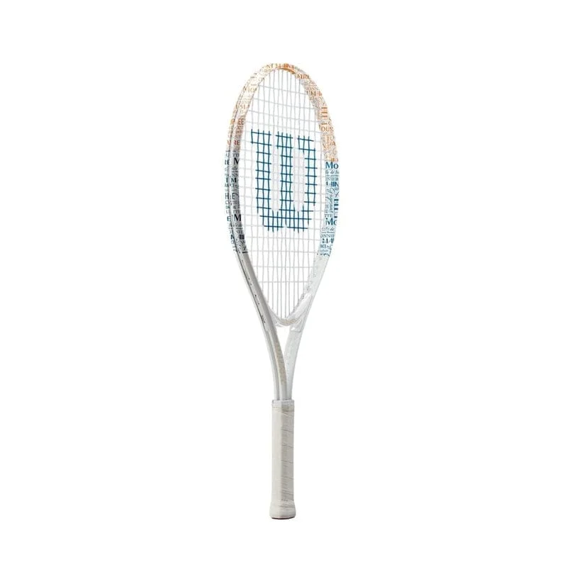 Description: WILSON ROLAND GARROS ELITE 26 MIXED JR Tennis Racket Recommended for juniors aged 11 and older, Wilson's Roland-Garros Elite Comp Jr tennis racket features a design inspired by the colors, textures and elegance of the world's foremost clay court tournament. Perfect for developing juniors, this 26-inch pre-strung racket uses a fused graphite and aluminum frame that's an optimal blend of stiff and flexible, resulting in excellent playability. It weighs in at under 10 ounces, so it's easy to handle and maneuver, and its balanced string pattern offers the best of both power and spin. A bumper guard protects the frame from damage, and it includes a special Roland-Garros partial racket cover. Head (sq cm)645 Head (sq in)100 Length (cm)66 Length (in)26 String Pattern16x19 Strung balance (cm)32.5 Strung balance (pts)-1 Strung weight (grams)265 Strung weight (ounces)9.35 Taper System (mm)22.5mm O beam Unstrung balance (cm)31.5 Unstrung balance (pts)-4 Unstrung weight (grams)250 Unstrung weight (ounces)8.82