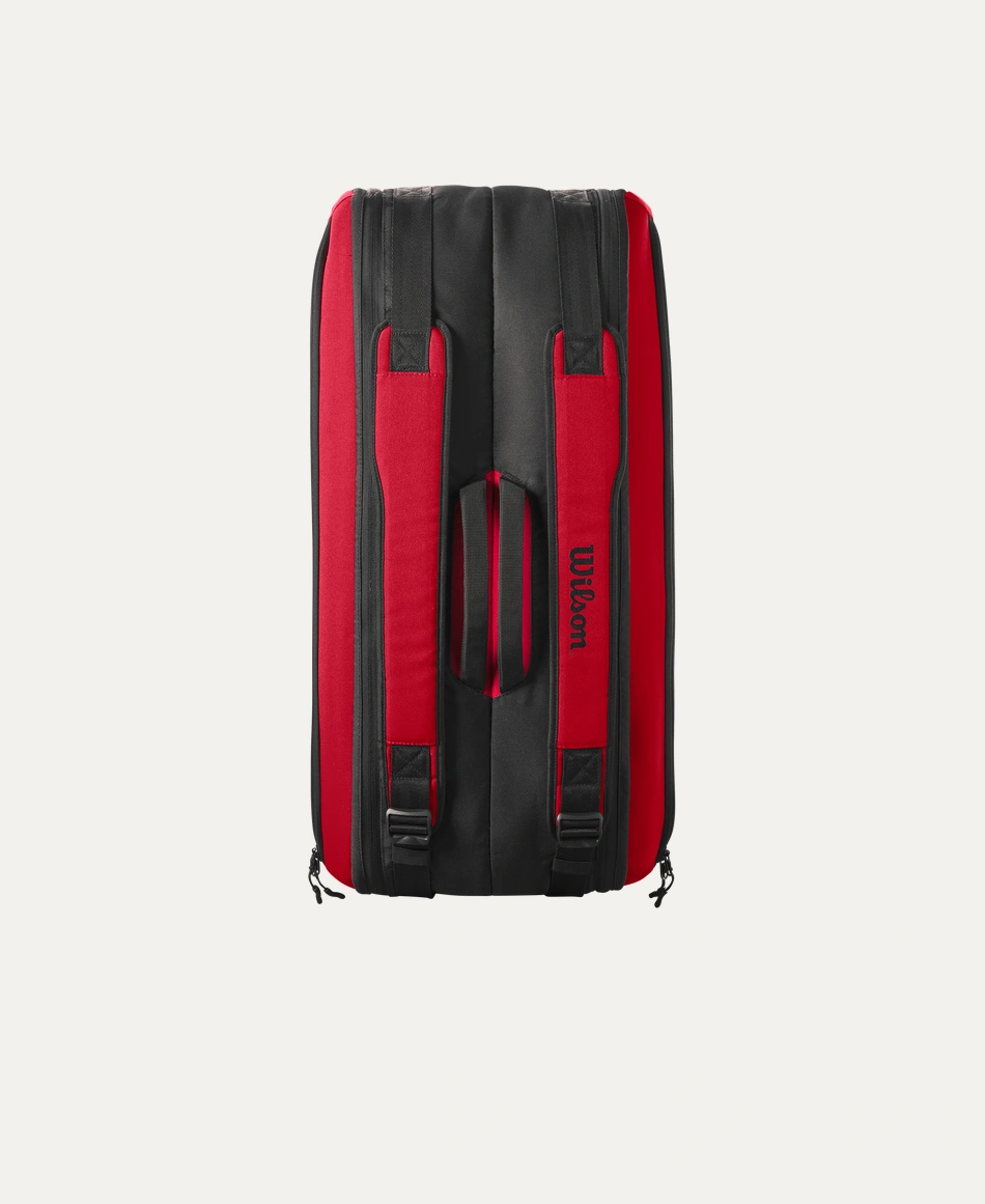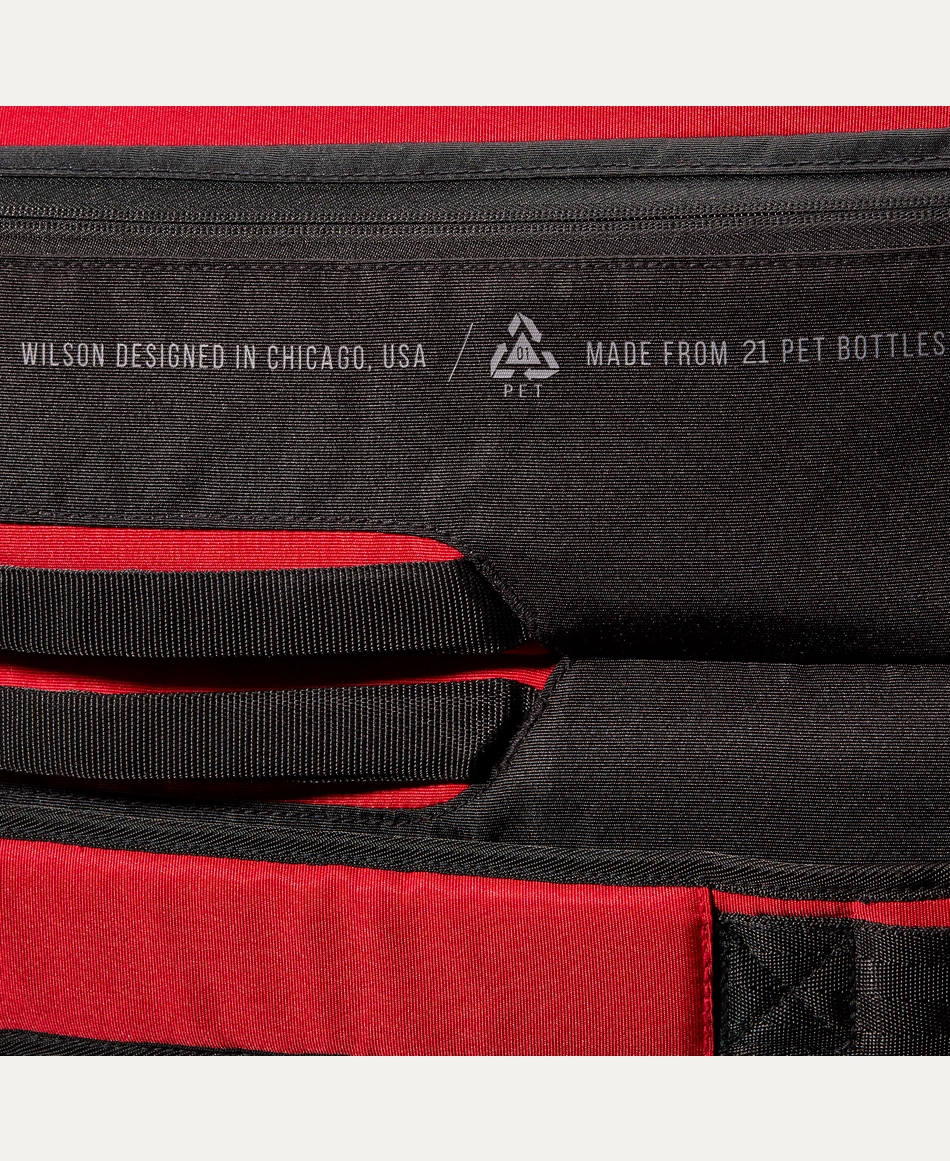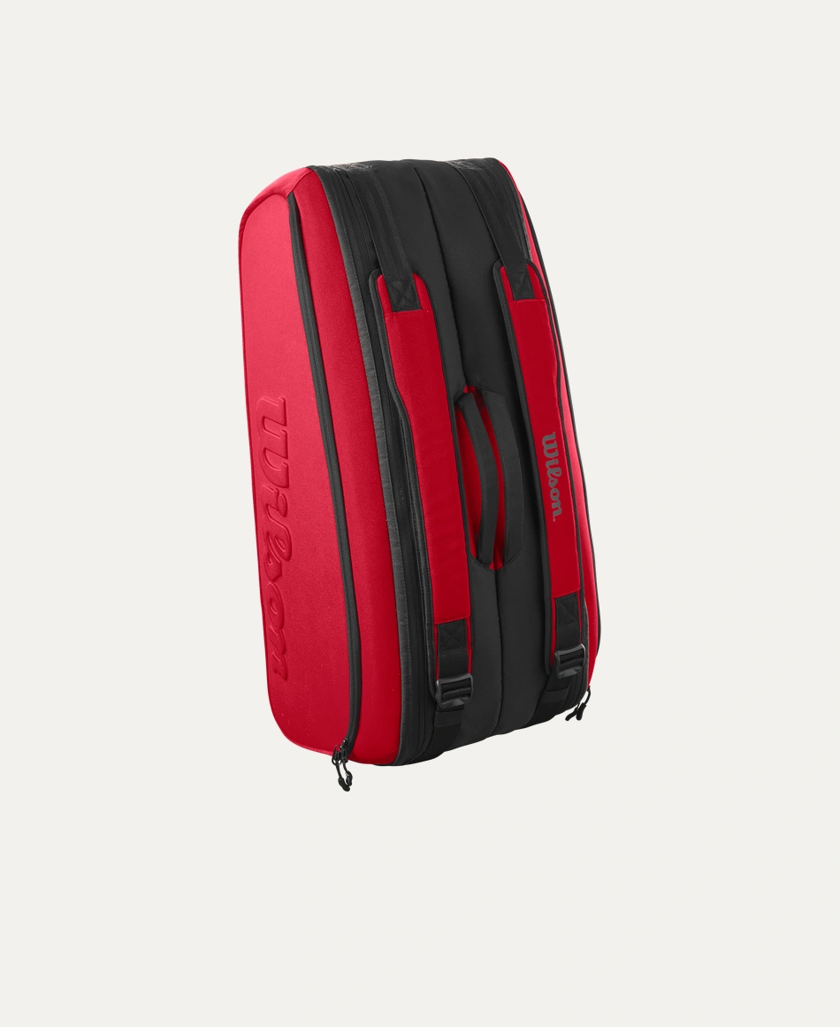 This Super Tour 9 Pack holds up to nine Tennis racquet across two main compartments for Tennis Equipment, including one lined with Thermoguard to protect against extreme temperatures. Additional features include a pair of large exterior side pockets for extra personal storage and a dual carry system for alternative modes of carrying. Comprising a recycled PET polyester shell fabric made from 21 PET bottles, this bag’s innovative design superbly complements the Clash v2 performance racquet line with its rich, red hue and embossed Wilson logo.